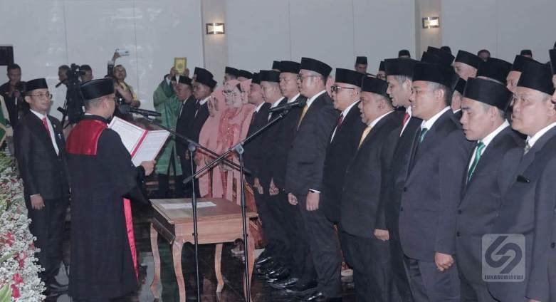 Prosesi pelantikan berlangsung di Aula DPRD Kabupaten Sukabumi, Senin (5/8/2024) dengan dihadiri Bupati Sukabumi H Marwan Hamami didampingi Wakil Bupati H Iyos Somantri.
