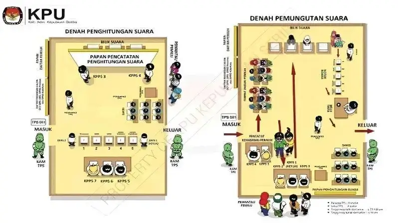 Selain itu, denah TPS juga perlu disiapkan dengan baik. Denah TPS adalah gambar atau peta yang menunjukkan letak dan susunan sarana dan prasarana yang ada di TPS, seperti ruangan atau tenda, meja, kursi, bilik suara, kotak suara, papan informasi, dan lainnya.