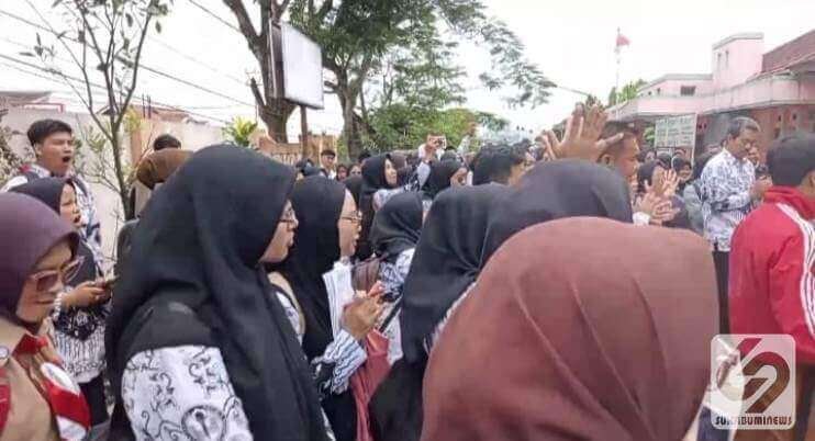 sukabumiNews, SUKALARANG – Ratusan tenga pendidik atau Guru menggelar aksi di depan kantor Kecamatan Sukalarang, Kabupaten Sukabumi, Jawa Barat, Senin, 2 Desember 2024.