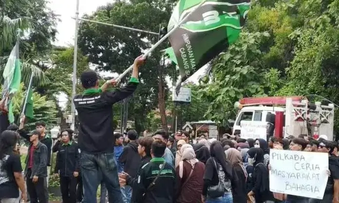 Ketua Umum HMI Cabang Kabupaten Subang M Ali Annaba saat menggelar demo di depan Kantor KPU dan Bawaslu Subang, Jawa Barat, Senin (16/12/2024), kepada wartawan di Subang mengatatakan, aksi ini dilakukan sebagai bentuk respons terhadap dinamika politik pasca Pilkada yang dinilai penuh intrik.