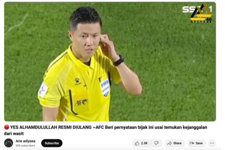 Sebuah unggahan video di YouTube ini, ini dan ini menarasikan bahwa pertandingan semifinal Indonesia melawan Uzbekistan akan diulang.