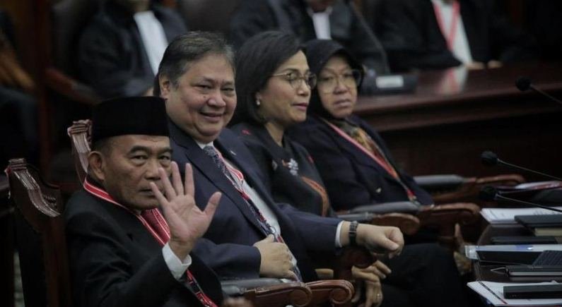 Empat menteri kabinet Presiden Joko Widodo (Jokowi) dihadirkan sebagai saksi dalam persidangan lanjutan sengketa Pilpres 2024 yang digelar pada Jum’at (5/4/2024).