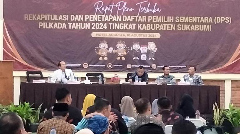 Rapat pleno penetapan DPS untuk Pilkada Kabupaten Sukabumi serta pemilihan (Pilgub) Gubernur dan Wakil Gubernur Jabar tahun 2024 tersebut digelar di slah satu hotel di wilayah Kecamatn Cicantayan, Kabupaten Sukabumi, Jawa Barat, Sabtu (10/8/2024).