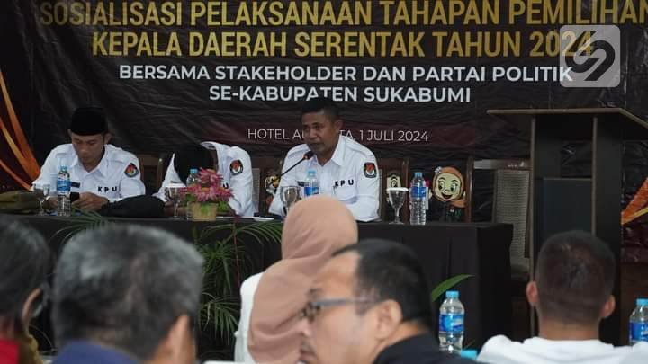 sukabumiNews.id, KAB SUKABUMI – Plh Sekda Kabupaten Sukabumi Toha Wildan Athoilah menhadiri acara sosialisasi pelaksanaan tahapan Pilkada serentak tahun 2024 yang digelar KPU Kabupaten Sukabumi di Hotel Augusta Cikukulu, Senin, (1/7/2024).