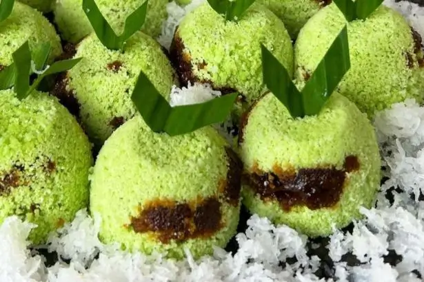 Hal ini berkat parutan kelapa pada bagian luar kue. Mungkin sekilas akan mirip dengan putu pada umumnya. Bedanya dari bentuk kue, yaitu mirip mangkuk terbalik.