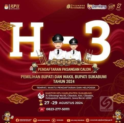 sukabumiNews, KAB SUKABUMI – KPU Kabupaten Sukabumi mengeluarkan pengumuman mengenai pendaftaran pasangan calon (paslon) Bupati dan Wakil Bupati Sukabumi tahun 2024.