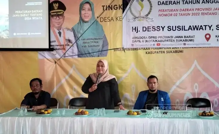 SUKABUMINEWS.ID (KAB SUKABUMI) – Anggota DPRD Provinsi Jawa Barat Hj. Dessy Susilawati melaksanakan kegiatan Sosialisasi Peraturan Daerah (Perda) nomor 2 tahun 2022 tentang Desa Wisata.
