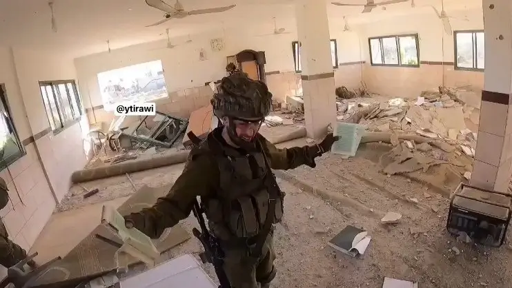 sukabumiNews.id, GAZA – Sebuah video viral memperlihatkan seorang tentara zionis Israel merobek Al-Quran di dalam sebuah masjid yang telah hancur, kemudian membuangnya ke bawah.